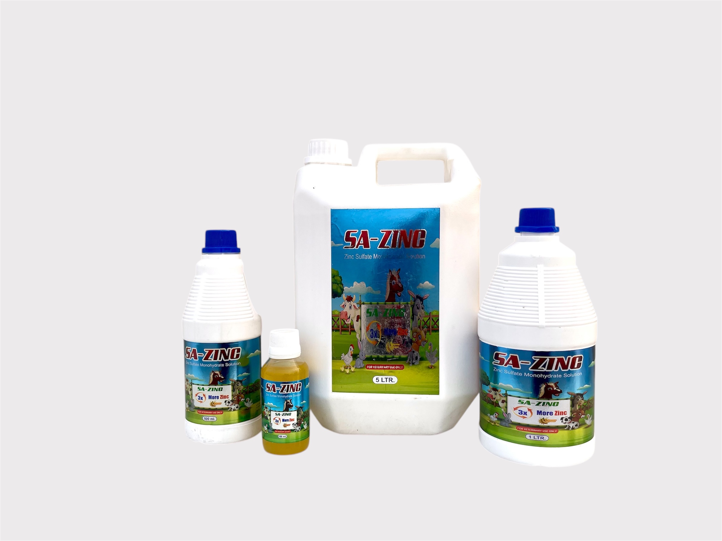 SA-ZINC is a zinc supplement solution formulated with Zinc Sulphate Monohydrate (USP) to help meet daily zinc requirements and support overall animal performance. It is used to help prevent or correct zinc deficiency, promoting healthy growth, stronger immunity, better skin/coat condition, and improved productivity in livestock and poultry when used as directed.